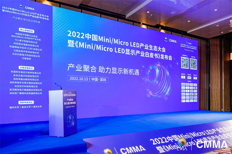 10月13日, 由中國電子視像行業(yè)協(xié)會Mini/Micro LED顯示產(chǎn)業(yè)分會(CMMA)主辦的“2022中國Mini/Micro LED產(chǎn)業(yè)生態(tài)大會”在深圳凱悅酒店盛大召開。本次大會以“產(chǎn)業(yè)聚合 助力顯示新機遇”為主題,旨在聚集產(chǎn)業(yè)鏈上中下游企業(yè),促進產(chǎn)業(yè)生態(tài)創(chuàng)新升級,助推新型顯示技術(shù)發(fā)展。